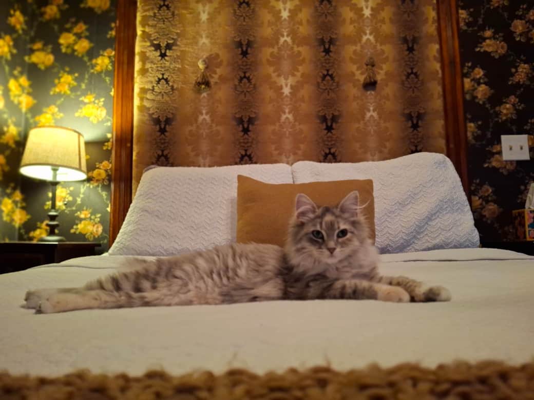 Originally from Evanston, Illinois, we visited Galena for the first time in the summer of 2024 and immediately fell in love. From Galena's rich history and charming architecture to the incredible restaurants and shops, we knew Galena was the place we wanted to call home. We are also huge fans of Victorian homes, so we were absolutely thrilled to discover the beautiful former Queen Anne Guest House was for sale. We dropped everything to come back to town and discovered not only a stunning home, but several porch cats as well!