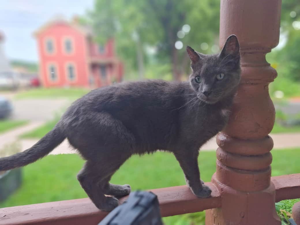 When we first visited the house, we were greeted by someone we didn't expect - a friendly grey cat sitting on the porch. After closing on the home almost two months later, we were once again greeted by this friendly kitty. We made fast friends, especially when she got very used to us feeding her first thing in the morning!